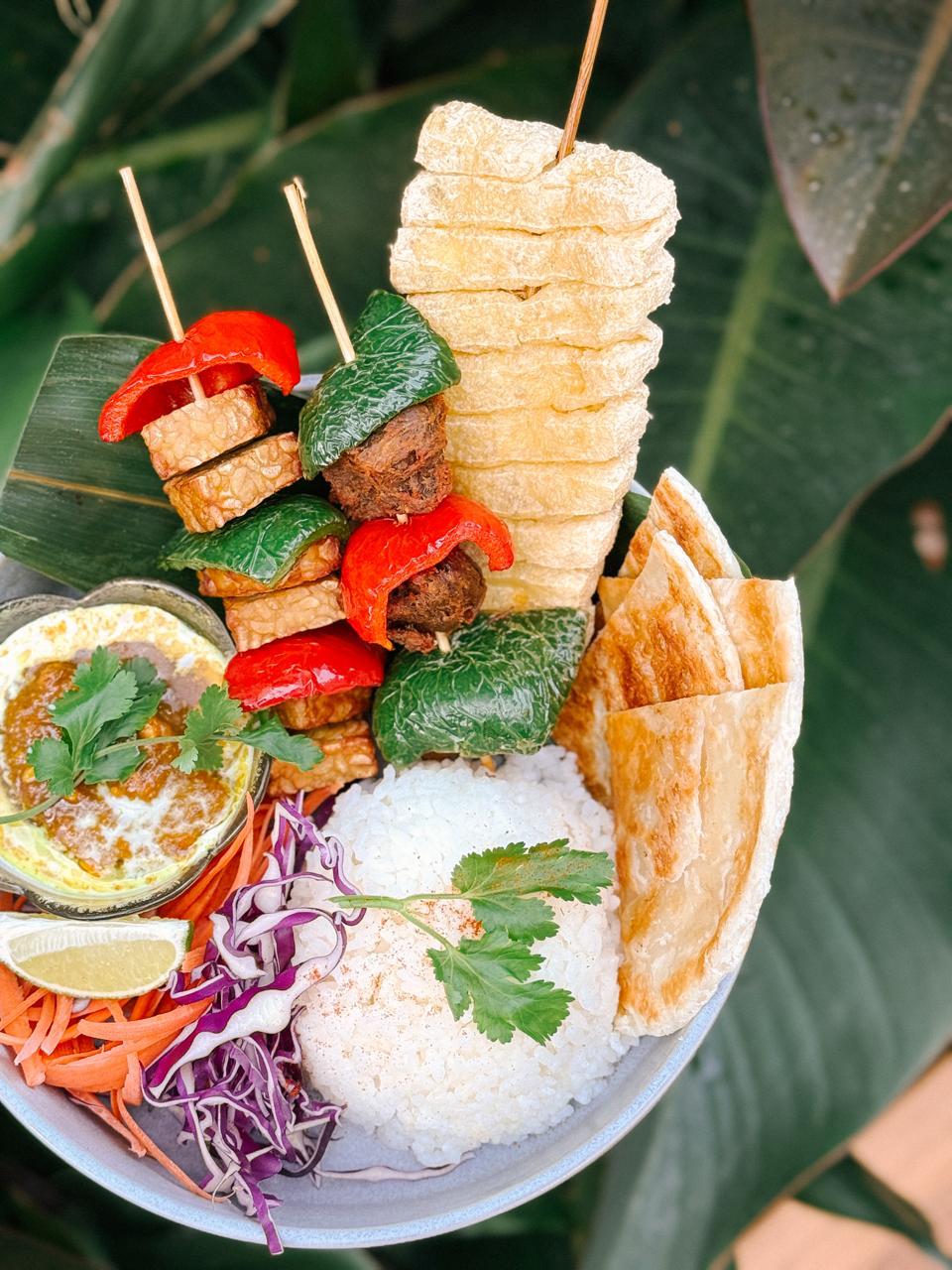 • GRILLED SATAY SKEWERS WITH RICE AND PARATHA (CONTAIN NUTS)
