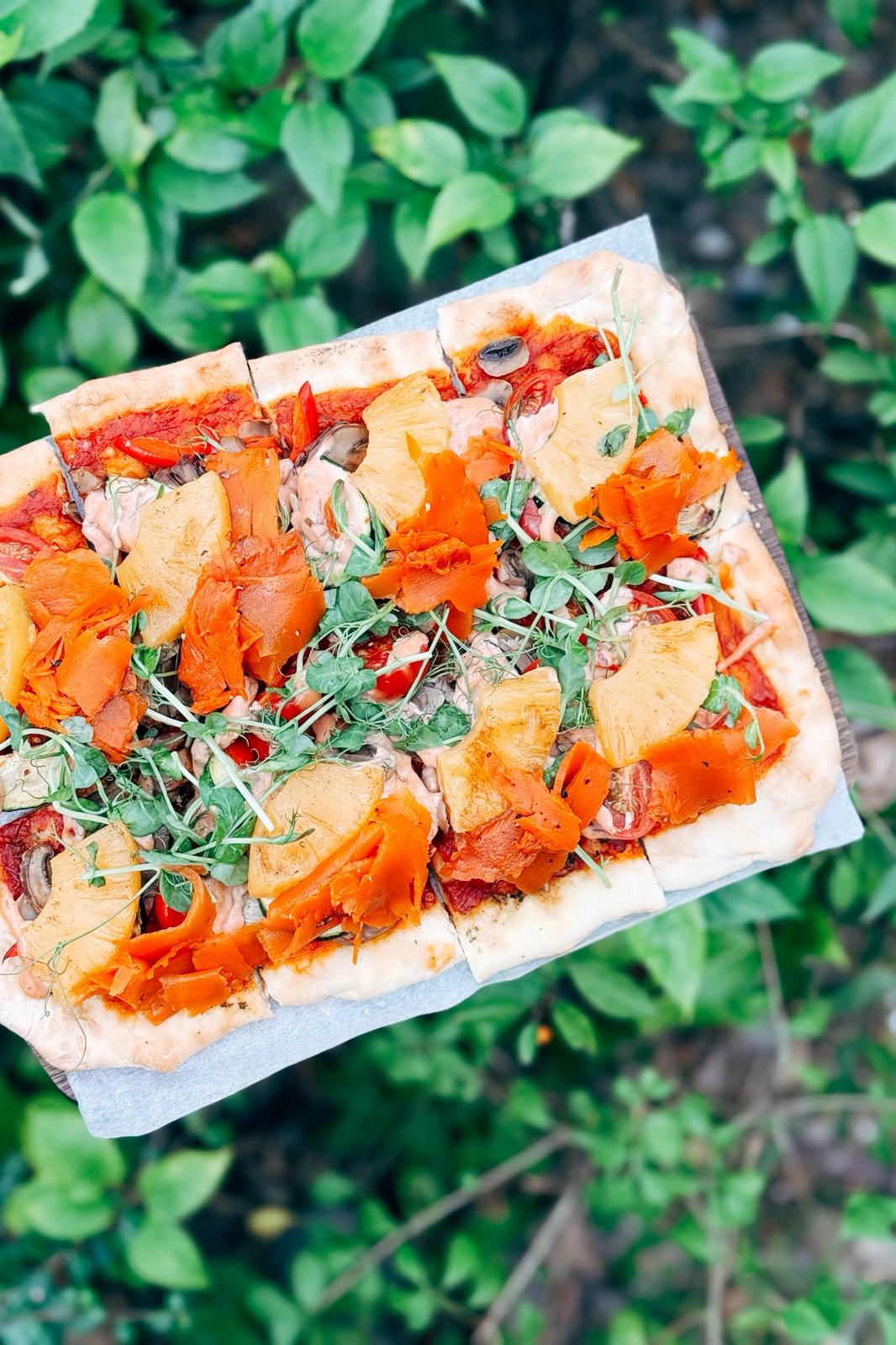 HAWAIIAN SMOKED CARROT SALMON PIZZA