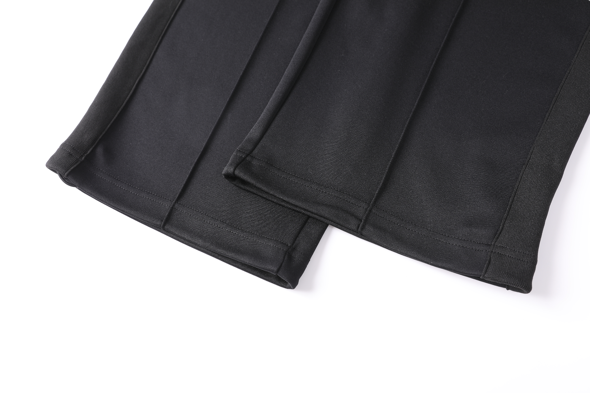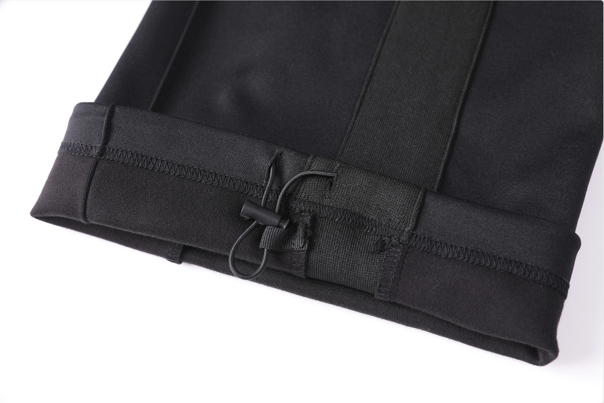 這款 GO OFF 運動長褲融合了街頭美學與實用機能性。褲身採用質感順滑且具垂墜感的運動面料,正面大腿處繡有標誌性的白色哥德字體 "GO OFF" LOGO。最獨特的設計在於褲腳設有可調節的彈性索繩扣,讓你隨心切換「直筒闊腳」或「束腳」兩種截然不同的穿搭。