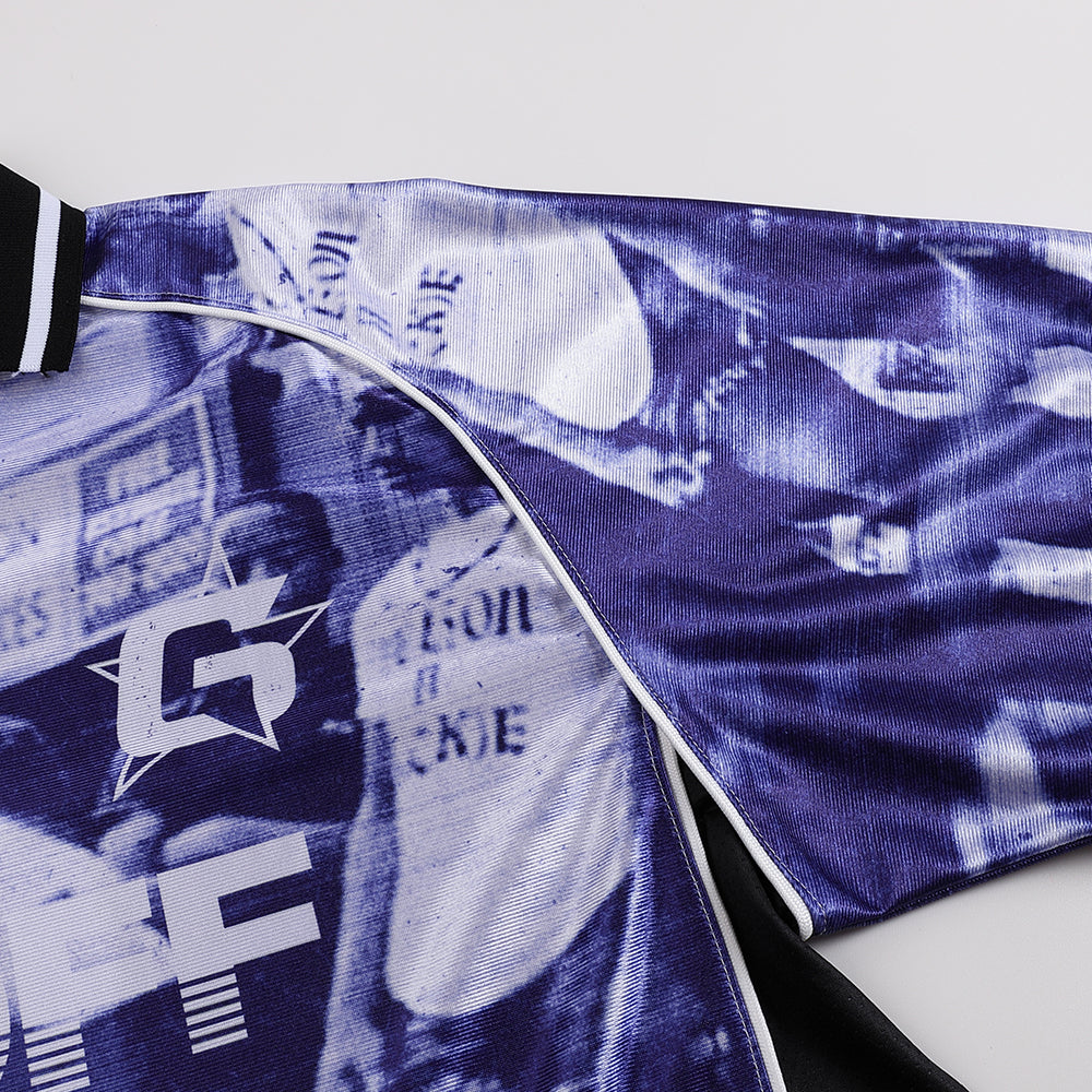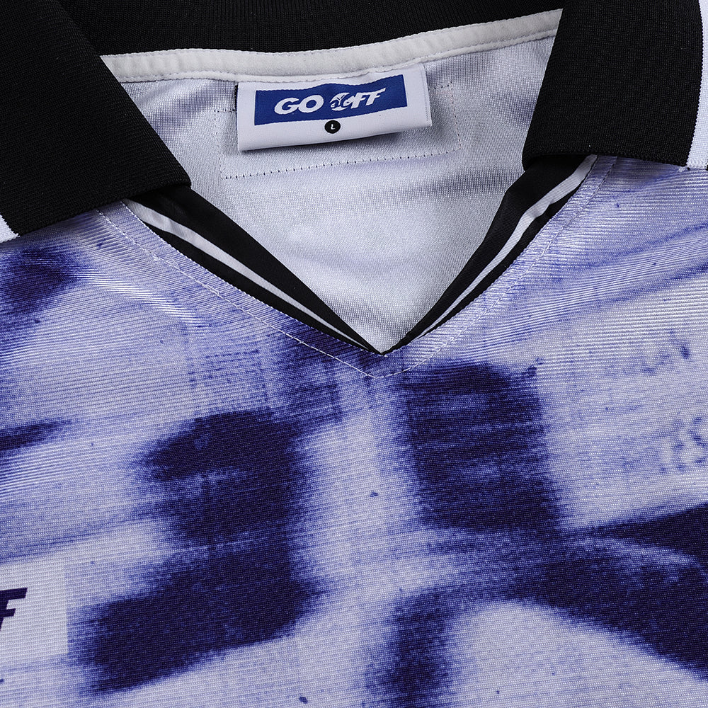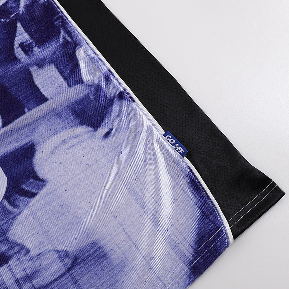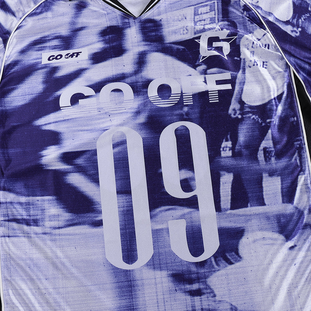 這款球衣以復古運動風為設計核心,採用輕薄透氣的聚酯纖維布料,適合日常穿搭或動態活動。靈感源自Christopher Sawyer於1982年左右在紐約西區CYPHER拍攝的照片,致敬Breaking在早期HIPHOP文化發展中的重要地位。球衣以藍紫色全彩印刷呈現,搭配“GO OFF”字樣與“09”號碼,黑色領口與袖邊增添對比層次。