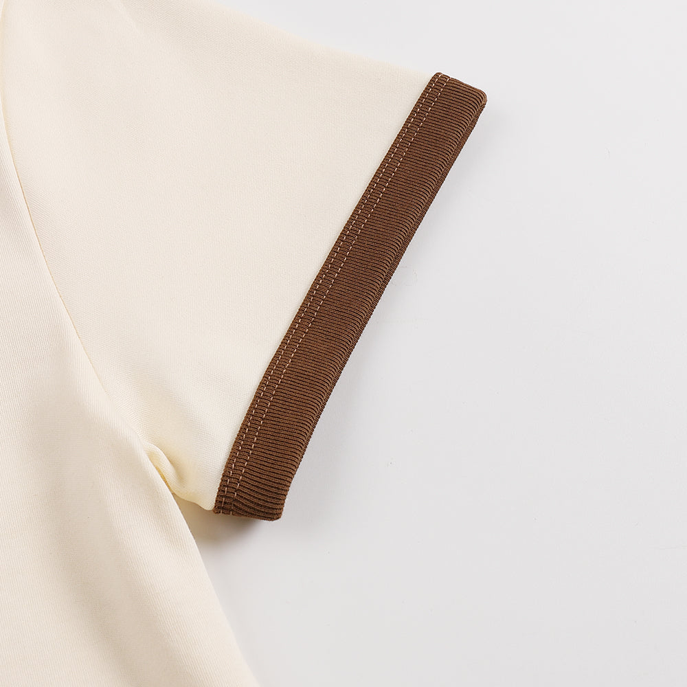 This T-shirt blends minimalist and streetwear styles, crafted from soft, breathable fabric, ideal for daily wear. The design, created by Hong Kong graffiti artist Fever, draws inspiration from the classic Breaking move “Stand,” showcasing a confident and composed feminine attitude. Featuring brown contrast trim on the collar and sleeves, it comes in a versatile off-white tone, perfect for mixing and matching with various outfits.