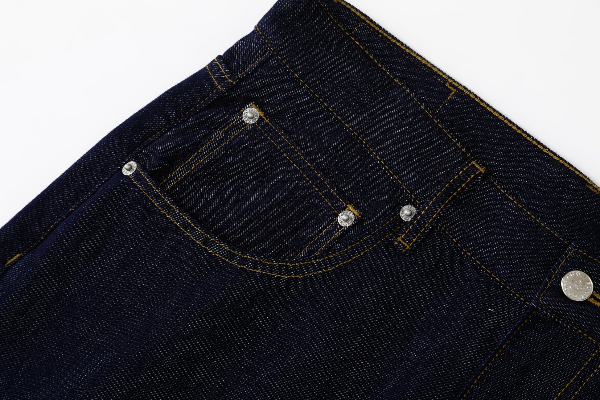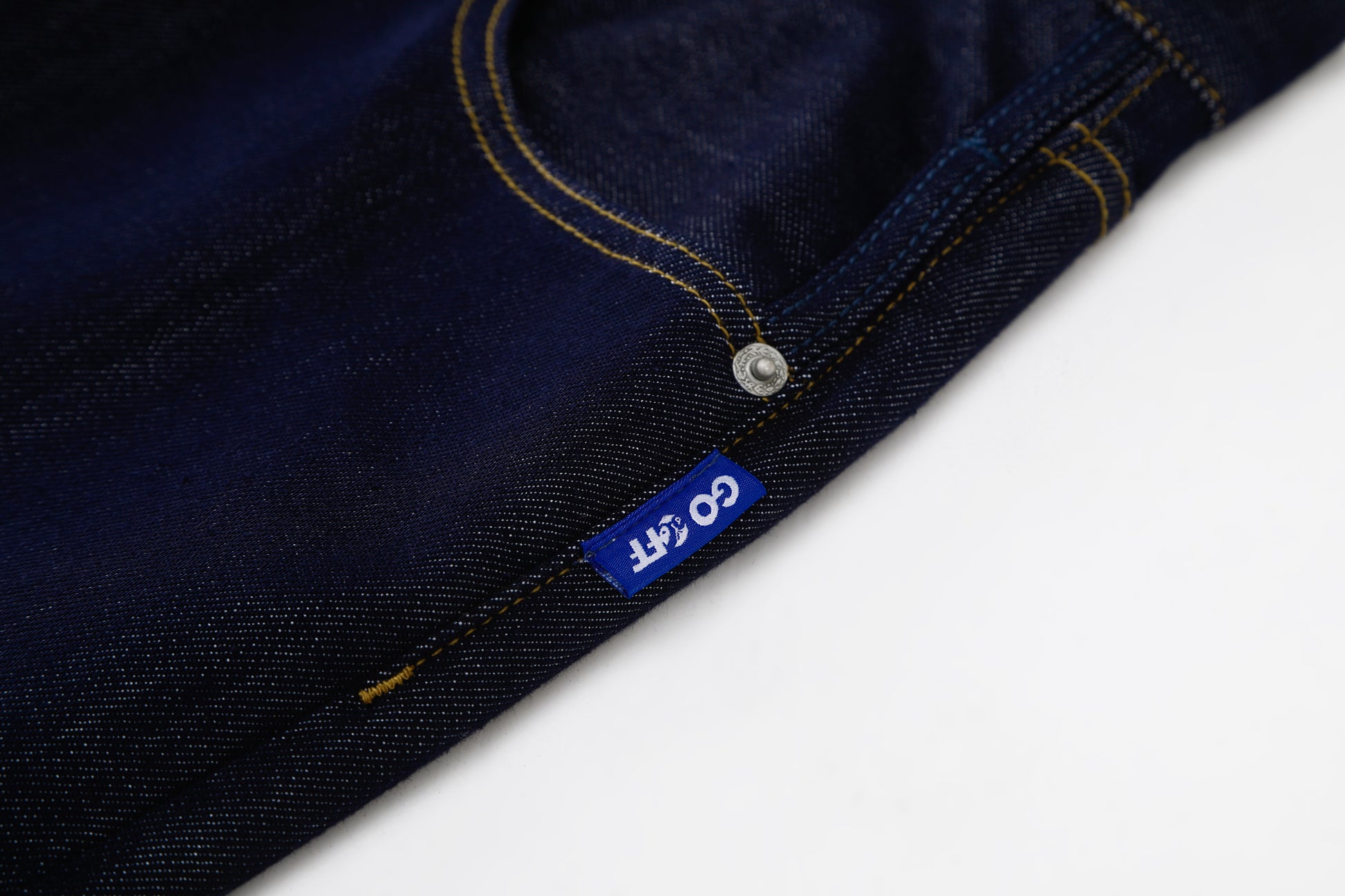 Crafted from a 12oz high-density, colorfast denim, these jeans use a special reactive dyeing process with eco-friendly color fixation to keep the rich indigo shade after repeated washes. The fabric is structured yet breathable and abrasion resistant for long-lasting comfort. Classic 5-pocket layout is reinforced with copper rivets and finished with dependable Japanese YKK zipper. A wide straight-leg silhouette offers clean lines and easy movement, while symmetrical geometric GO logo stitching on the back pockets delivers subtle brand identity. Ideal for commuting and off-duty styling.