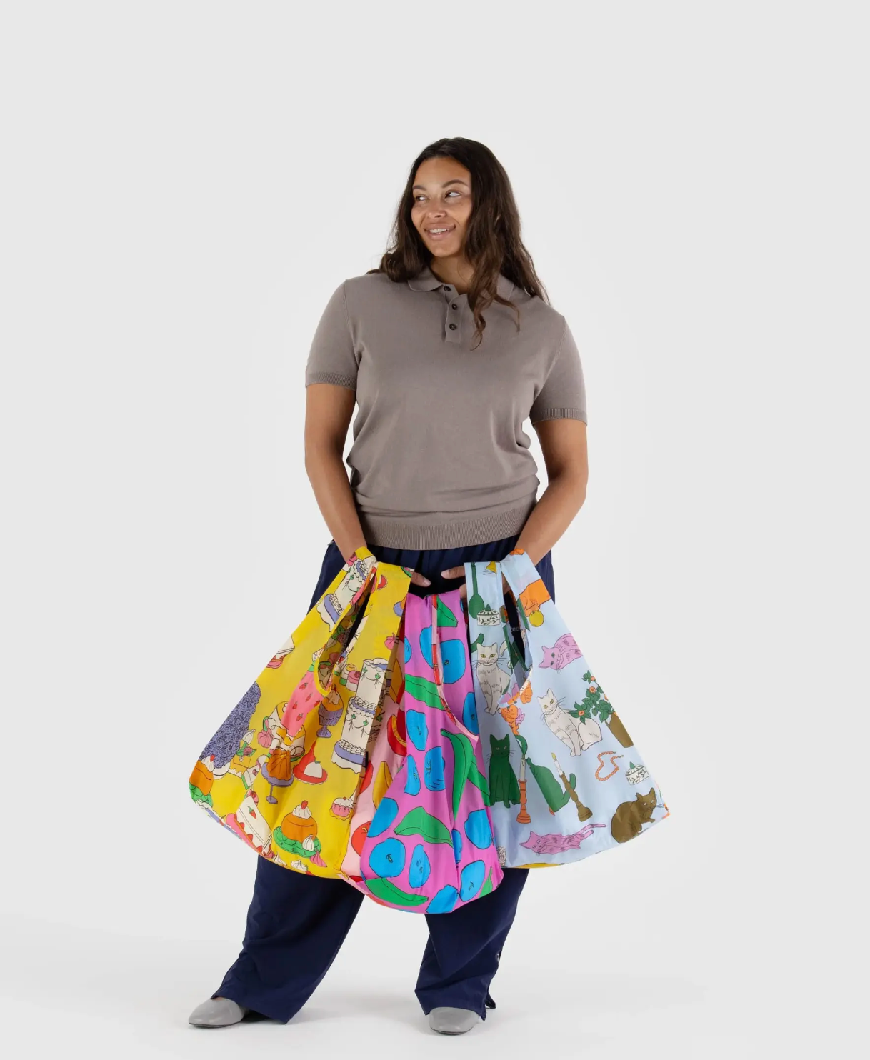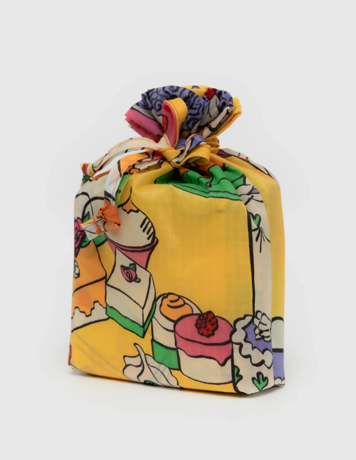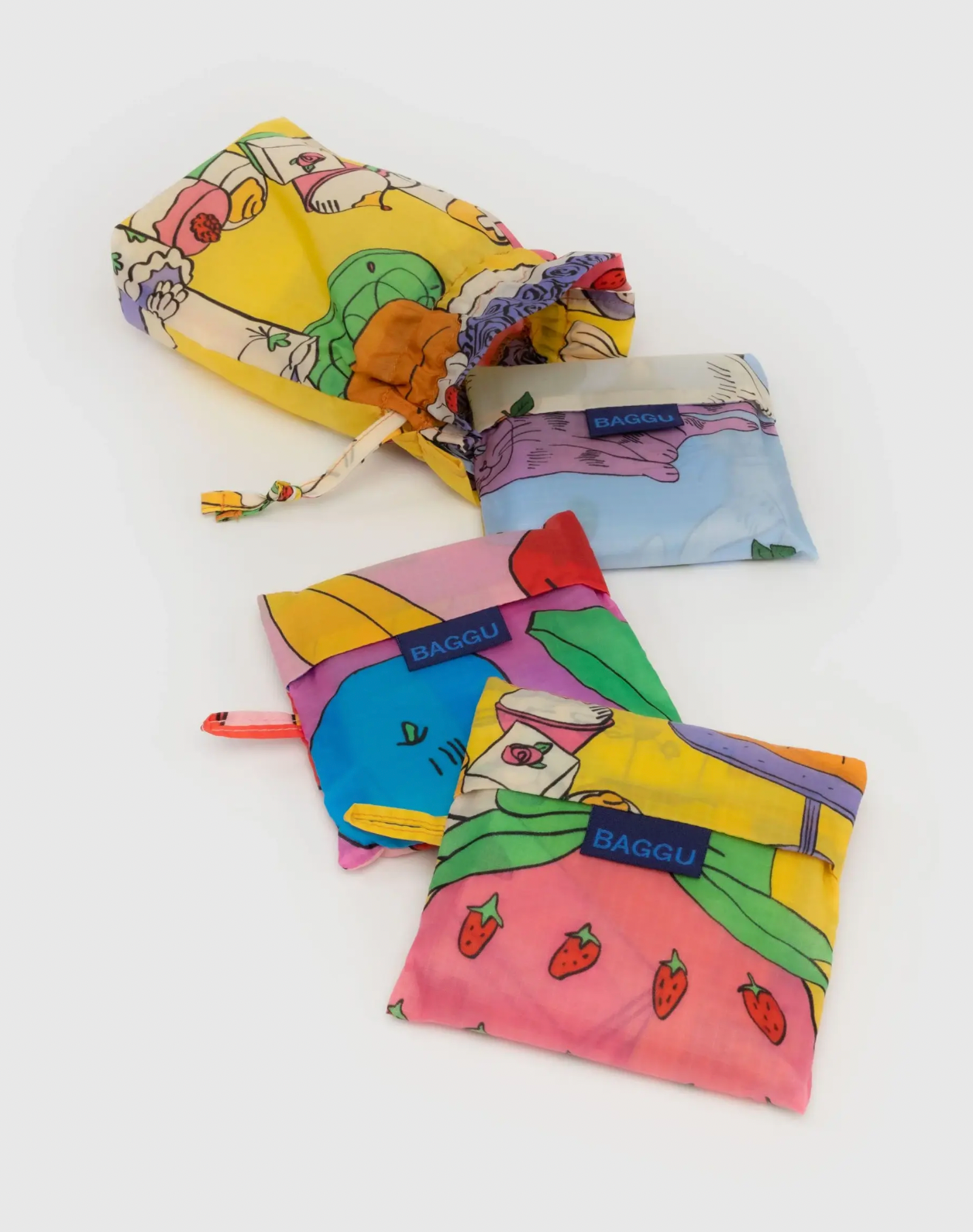 A set of Standard Baggus in a reusable drawstring pouch. Each set contains three unique prints, ideal for gifting.